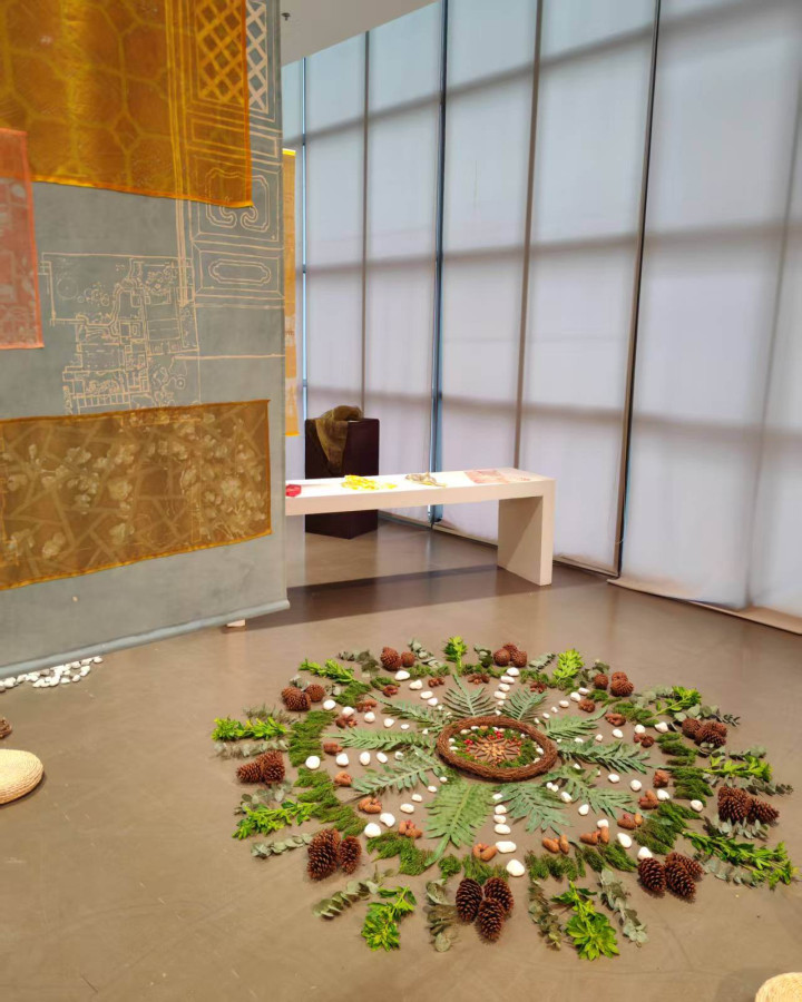 依托美术馆多感官、沉浸式环境,将展览空间转化为疗愈与创造并置的“共生体”。通过曼陀罗装置、传统工艺原展品、AIGC等多元媒介,形成传统与现代交汇、静态与动态呼应、视觉—听觉—触觉联动的新型体验场景。